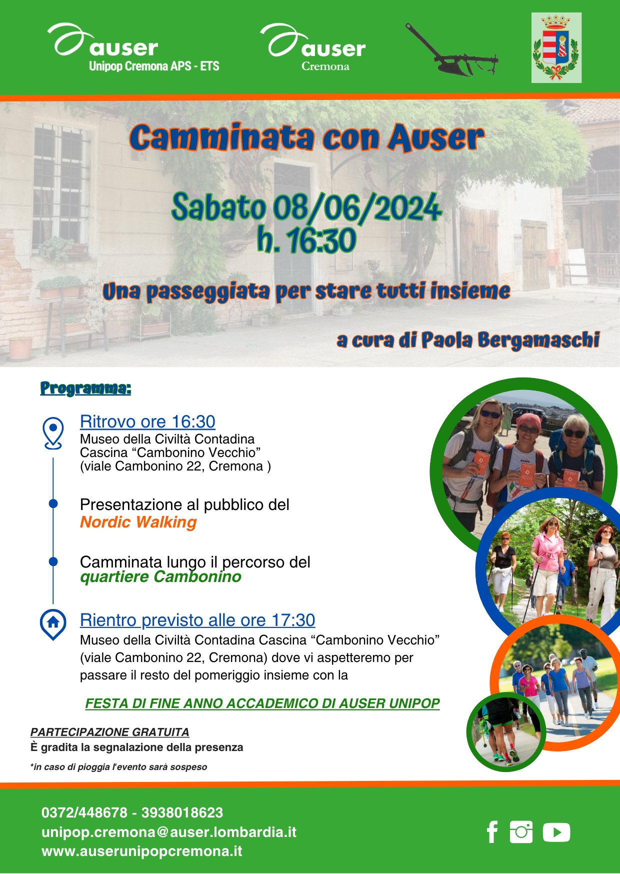 Al termine della passeggiata, vi aspetteremo per poter festeggiare insieme la chiusura dell’anno accademico 2023/24 di Auser Unipop.