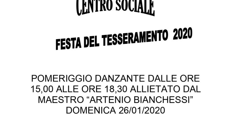 Leggi tuttoAmici di Auser,domenica 26 gennaio gli amici di Auser Madignano vi aspettano per la Festa del Tesseramento 2020. Partecipate numerosi!!!!
