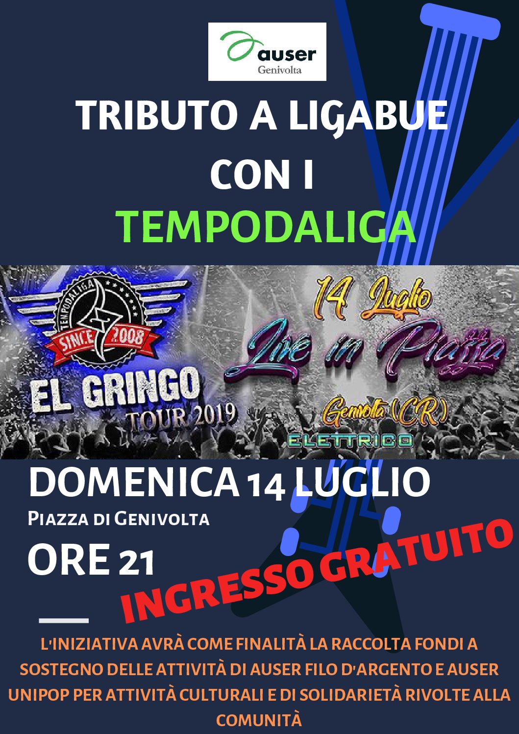 Leggi tuttoAuser Insieme di Genivolta, in collaborazione con Tempodaliga, organizza domenica 14 luglio alle ore 21:00 un concerto gratuito in piazza