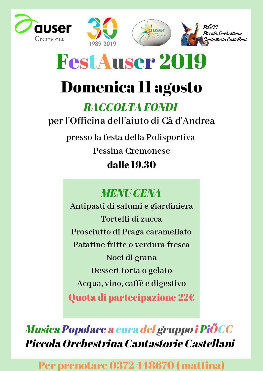 Leggi tuttoI volontari di Auser Casaletto di Sopra vi aspettano numerosi! Non mancate!!!!!