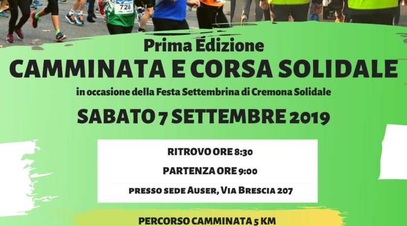 In occasione della Festa Settembrina di Cremona Solidale si terrà la Prima Edizione della Camminata e Corsa Solidale, organizzata dai