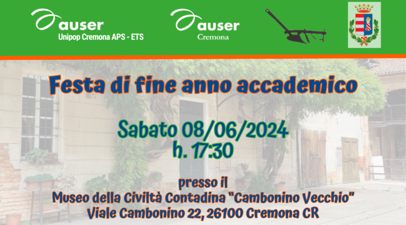 Leggi tuttoFESTA DI FINE ANNO ACCADEMICO Cari amici, Auser Unipop è lieta di invitarvi, sabato 08/06/2024, al Museo della Civiltà Contadina